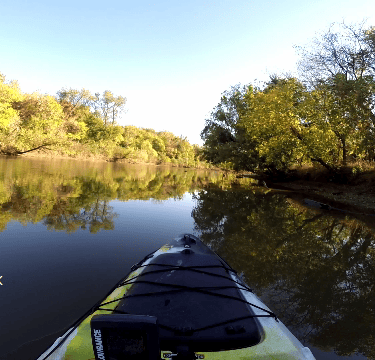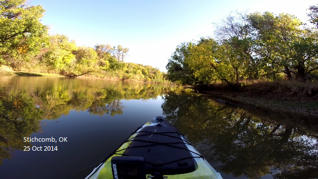 This picture was taken before I purchased my jeep. Just as a starting point I includes this picture of the Stitchcomb Wildlife Refuge in Oklahoma near Oklahoma City. It was take while I was living their for my last job. Stitchcomb is a pretty interesting area that has a small creek that flows for several miles through and around wildlife area. This picture was taken at around 4PM where the creek is wide and fairly deep. Areas before and after this section were much narrower (some times less than 10 feet) and only a few inches deep. It was actually pretty difficult to paddle in those areas because the paddle would hit bottom when less than 6 inches deep.
